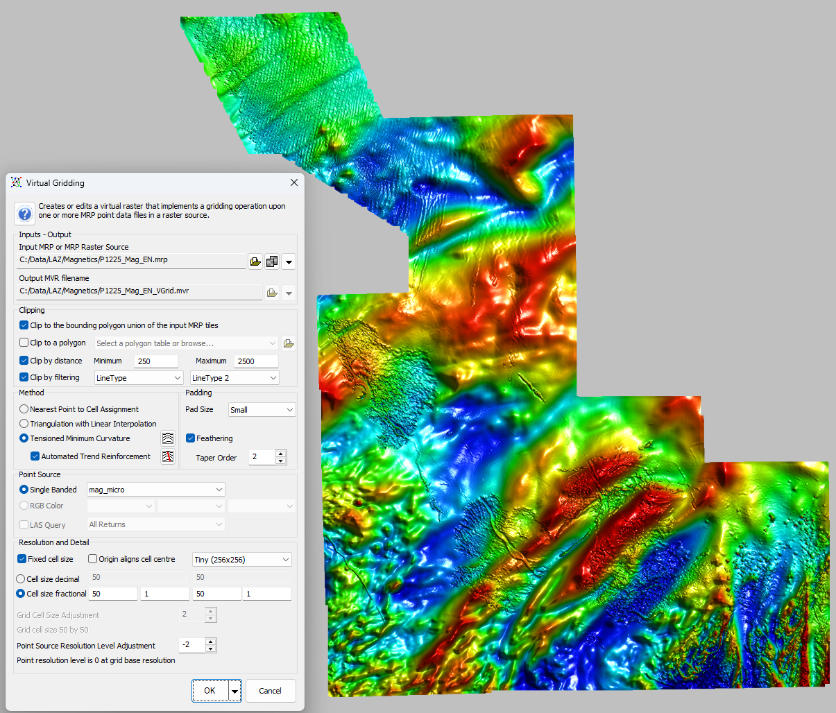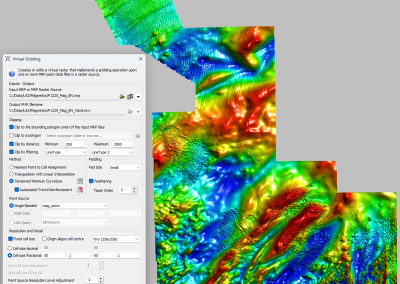• A Virtual Gridding Operation that will grid point data stored in one or more MRP files in real-time and allows users to interactively modify gridding parameters on-the-fly.